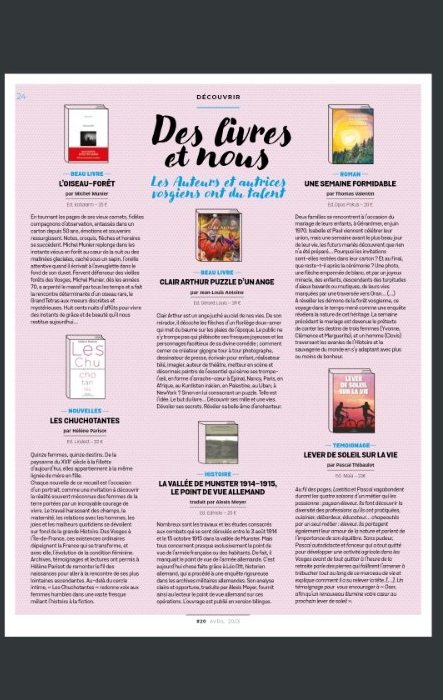 Et une belle nouvelle le magazine du département des Vosges dans sa rubrique : » des livres et nous » présente mon livre Lever de soleil sur la vie.