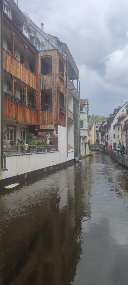 Nous arrivons à Fribourg en brisgau, ville qui est la porte d’entrée de la Forêt Noire. Cette ville dont le nom signifie ville libre, il faut s’y promener tranquillement et découvrir les « Bachle » , 15,5 kilomètres de caniveaux ouverts qui bordent les trottoirs.