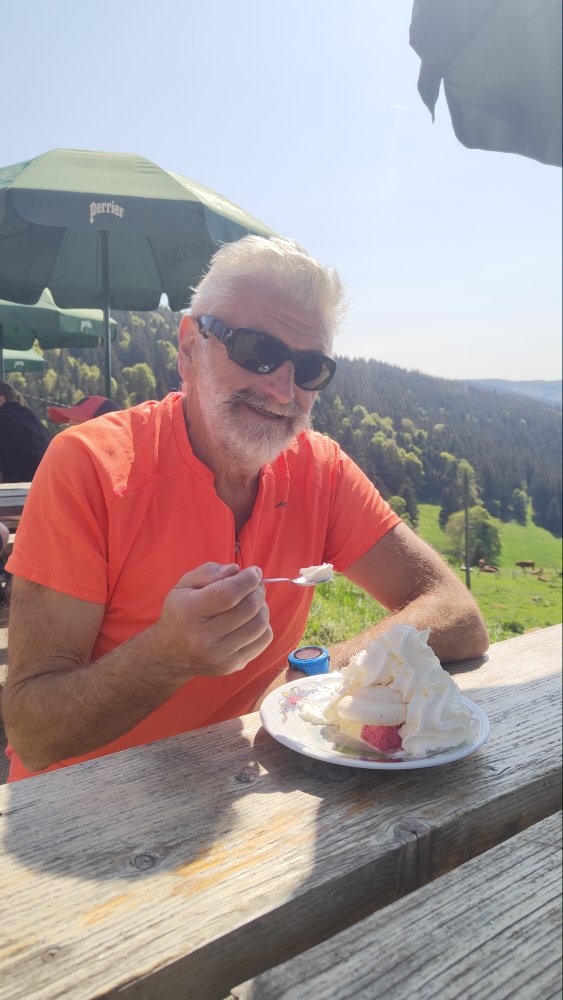 Nous voici à la terrasse d’une ferme auberge, dégustant une douceur et en face de nous ce panorama dont je ne me lasse point depuis plus de 60 ans.