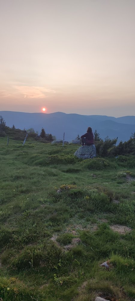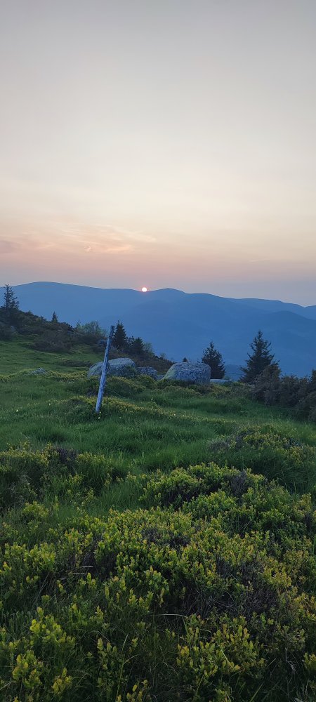 C’est proche de ce sommet que nous nous installons pour la nuit et malgré un vent froid nous profitons du coucher de soleil, instant toujours merveilleux.