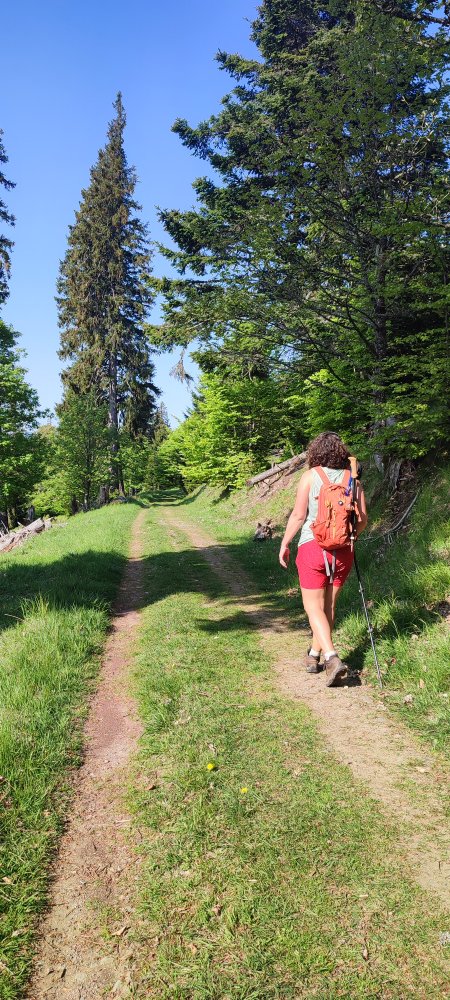 La participation à ce spectacle, garantit une forme éblouissante. Nous partons en randonnée pour la journée et après un bon kilomètre de marche nous parvenons au sommet du Petit Ballon.