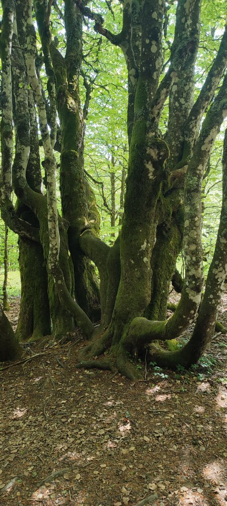 Ici les vents violents, particulièrement en hiver, torturent le hêtre qui est l’un des seuls à résister à ce climat equivalent en hiver à une altitude de près de 2000 metres dans les Alpes.