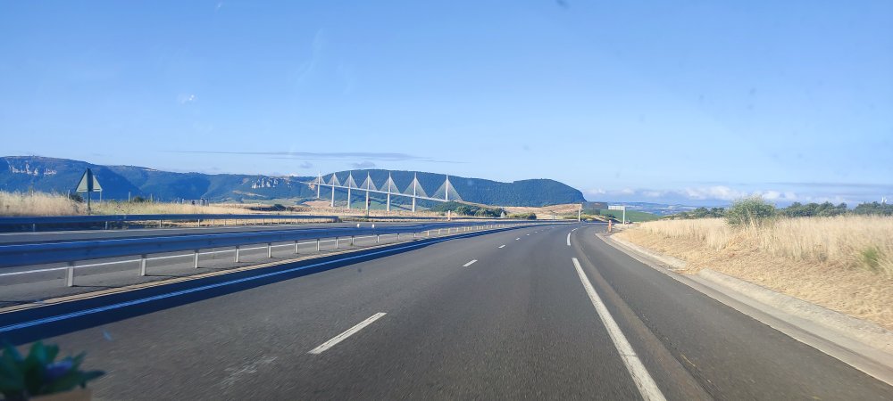Nous reprenons la route pour traverser la France. Franchissons le viaduc de Millau et malgré toutes les critiques cela reste une œuvre d’art ou une réussite architecturale selon notre regard.