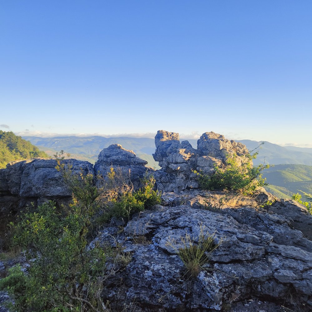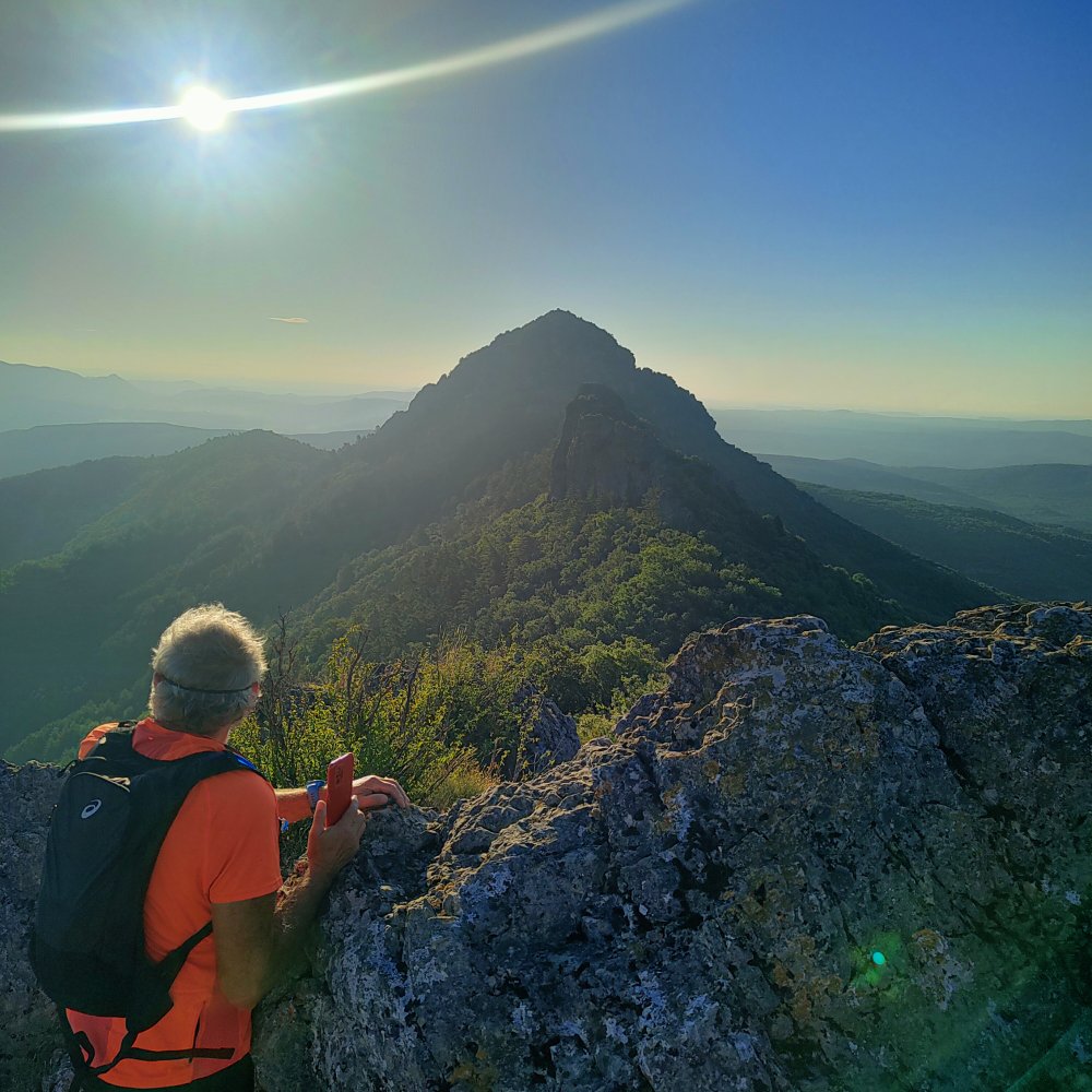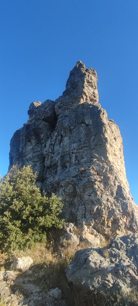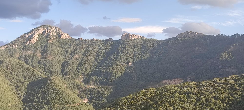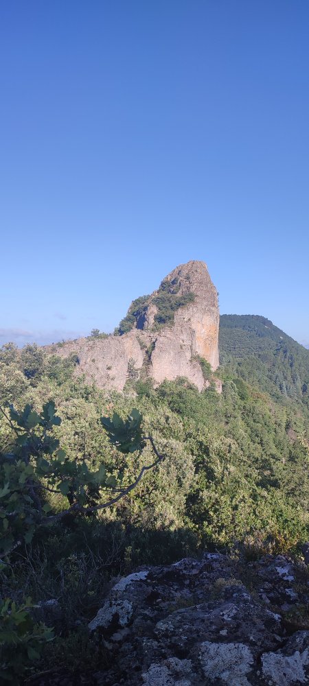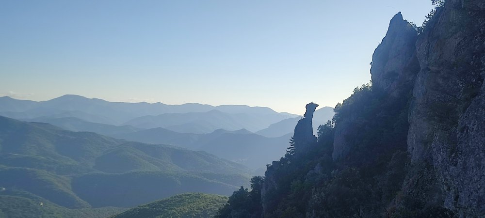 Pour atteindre les 789 mètres du Roc Castel il nous faut fournir quelques efforts, une pente raide et quelques passages vertigineux sur des rochers.