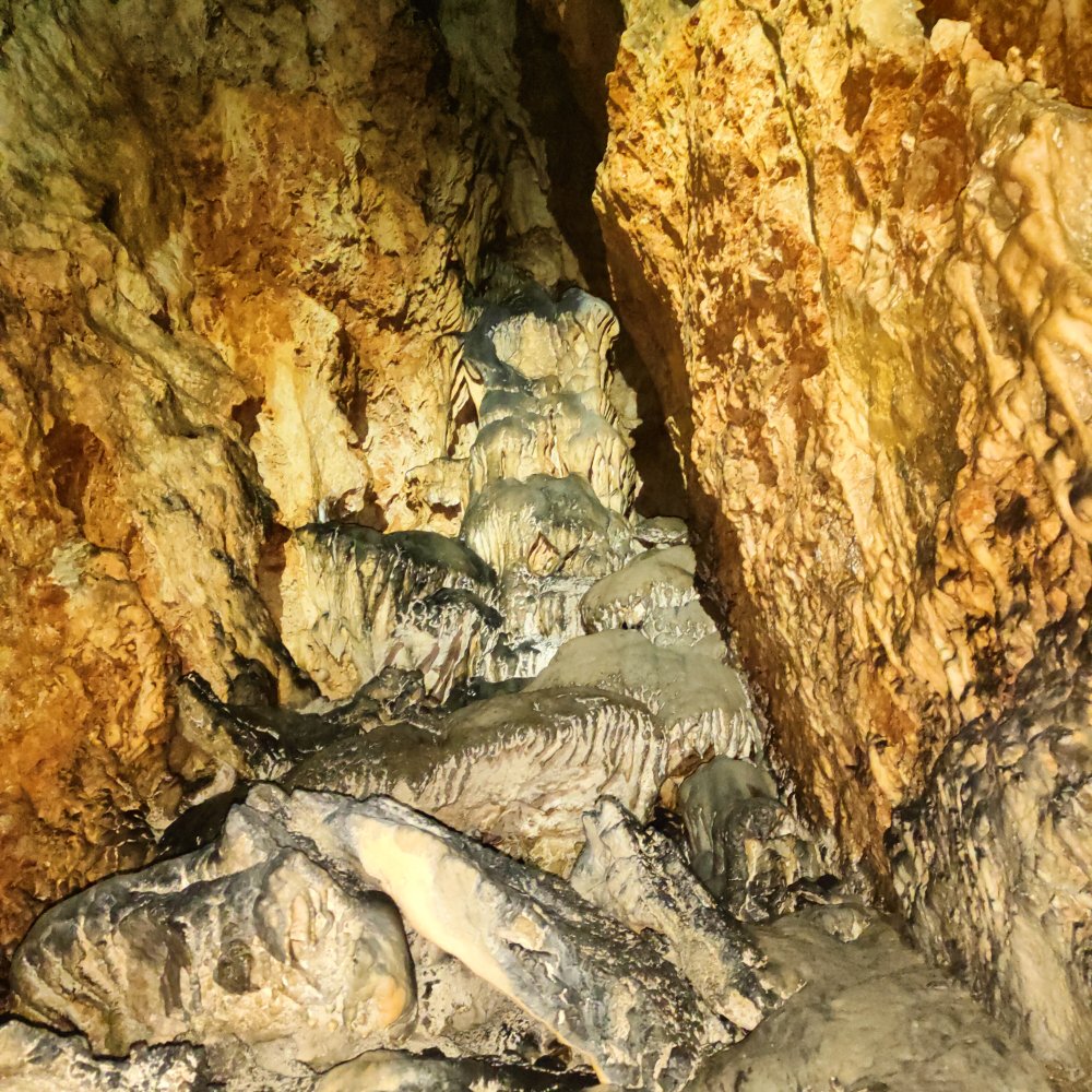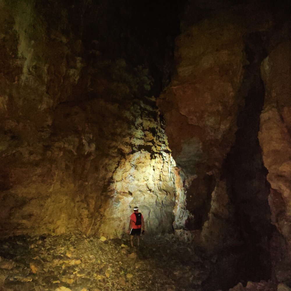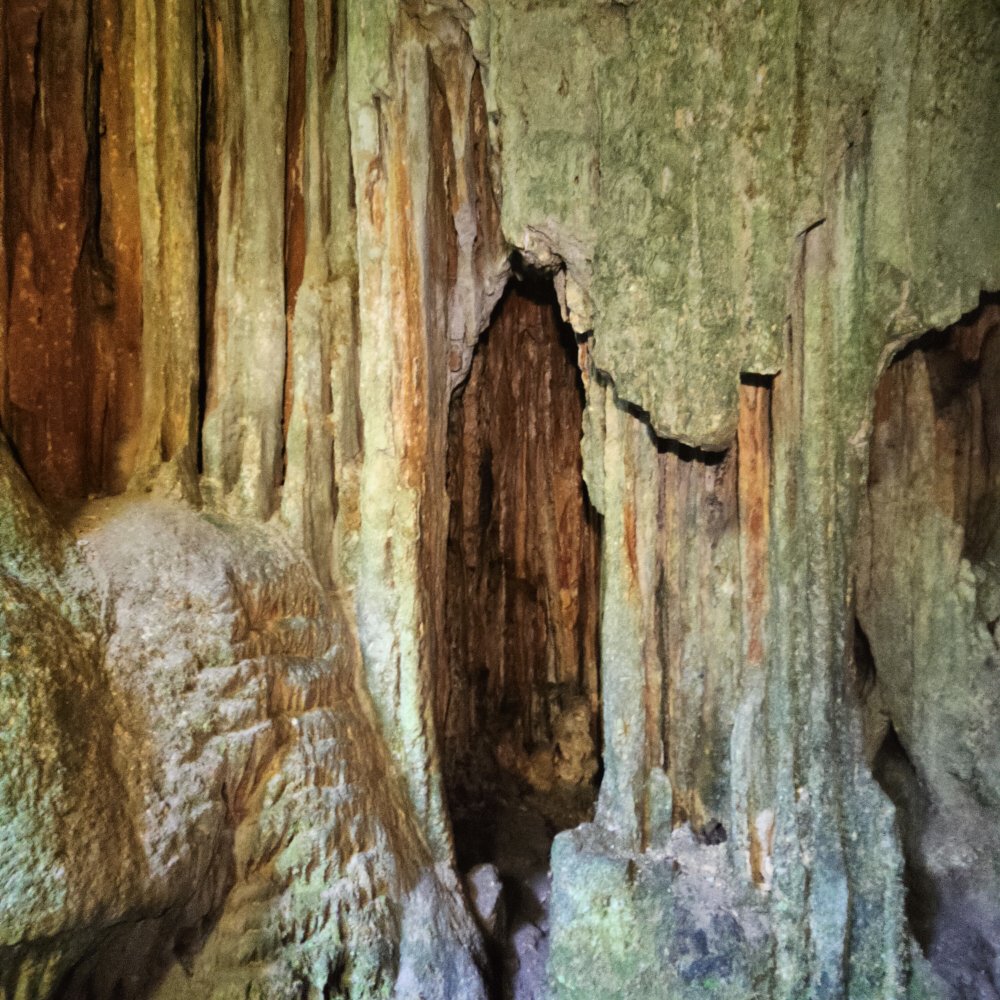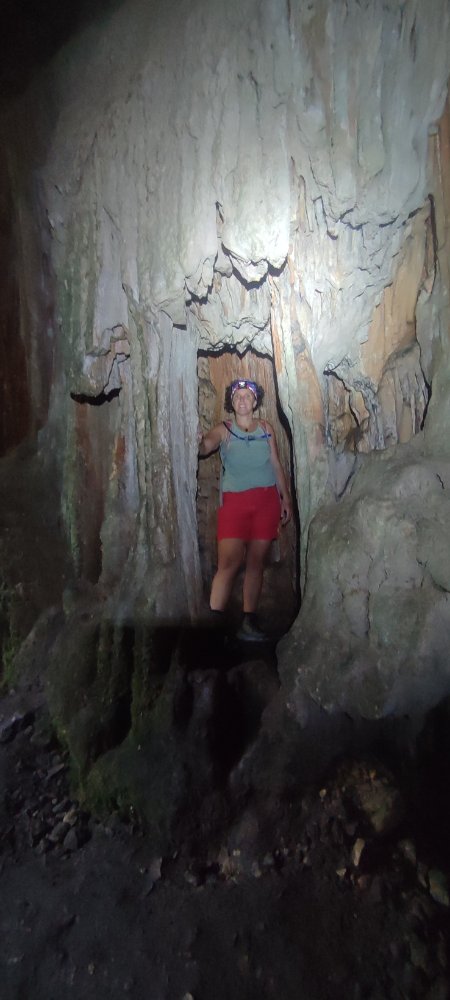 Pour y descendre le terrain est bien glissant, une fois que nos yeux s’habituent à l’obscurité et que nos frontales éclairent les parois, nous sommes époustouflés par les couleurs, sa hauteur est impressionnante.