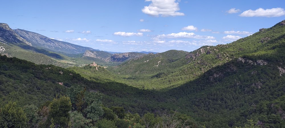 Nous repartons musardant et cela nous permet de profiter d’un panorama sur la vallée des gorges de la Buèges.