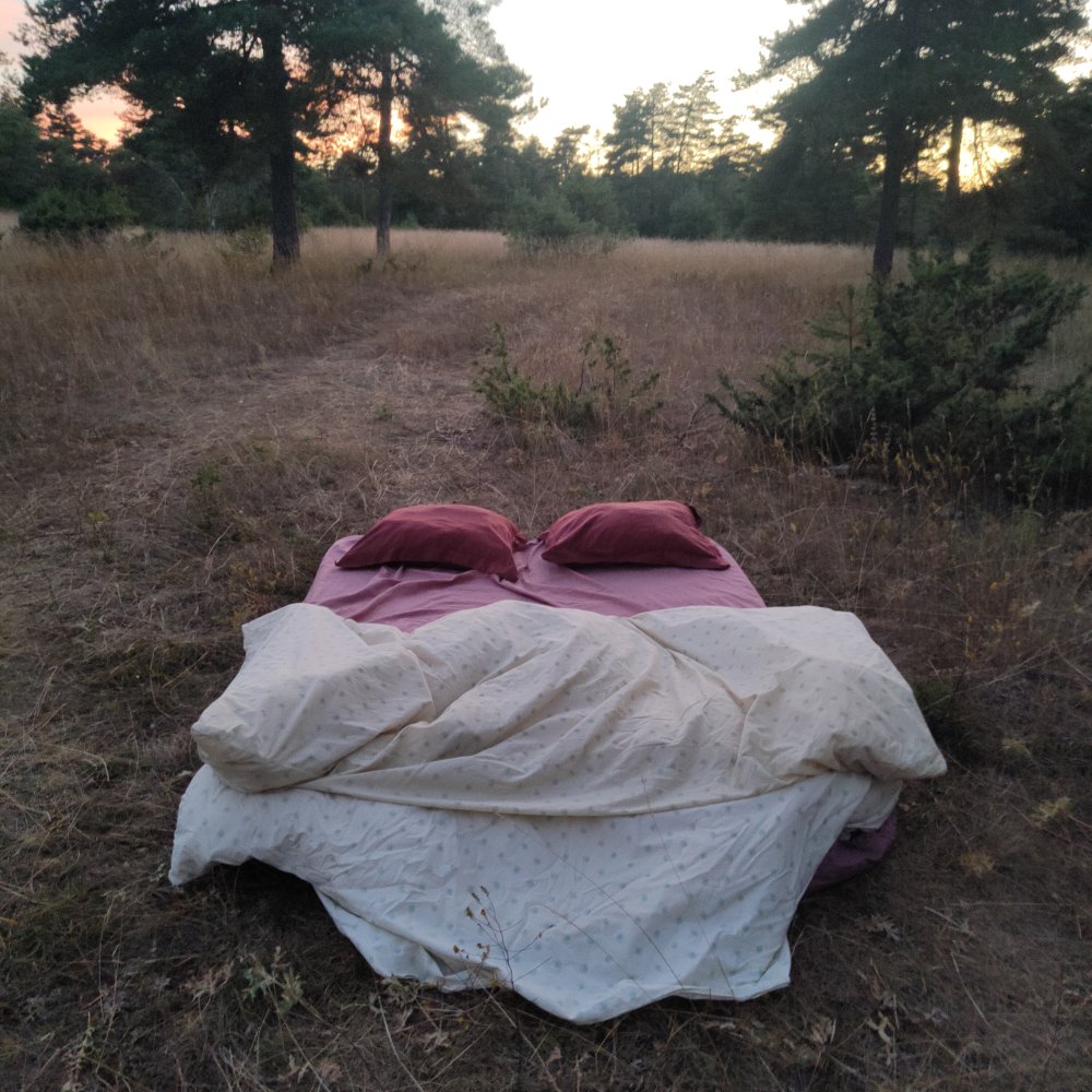 La nuit arrive, la température ne décline guère, alors nous prenons matelas et couette pour une nuit à la belle étoile !