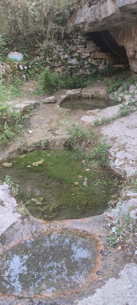 Nous poursuivons en direction du hameau de Montméjean en passant par une source où un écrit sur une pierre raconte ceci :