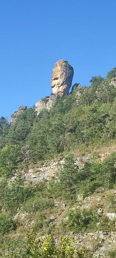 Nous longeons les gorges de la Dourbie, heureusement personne sur la route car nous avons le nez en l’air pour admirer les falaises que le soleil illumine.