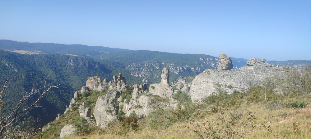 Bien chouette randonnée sur le Causse Noir, semble-t-il. On aperçoit le viaduc de Millau au fond de la photo, donc vous êtes bien en Aveyron. Merci !