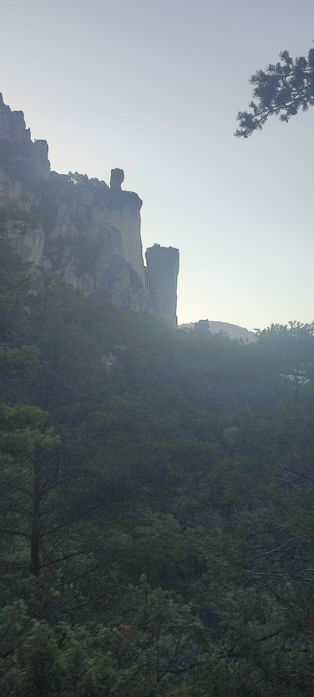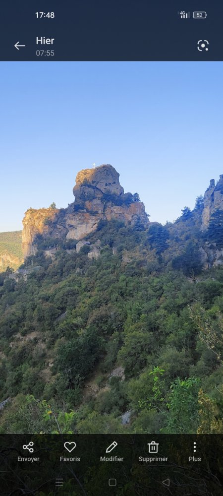 Au cours de la descente, il nous est proposé de nous rendre au sommet d’une roche, celle-ci est étroite et s’érige isolée vers le ciel dominé par une croix