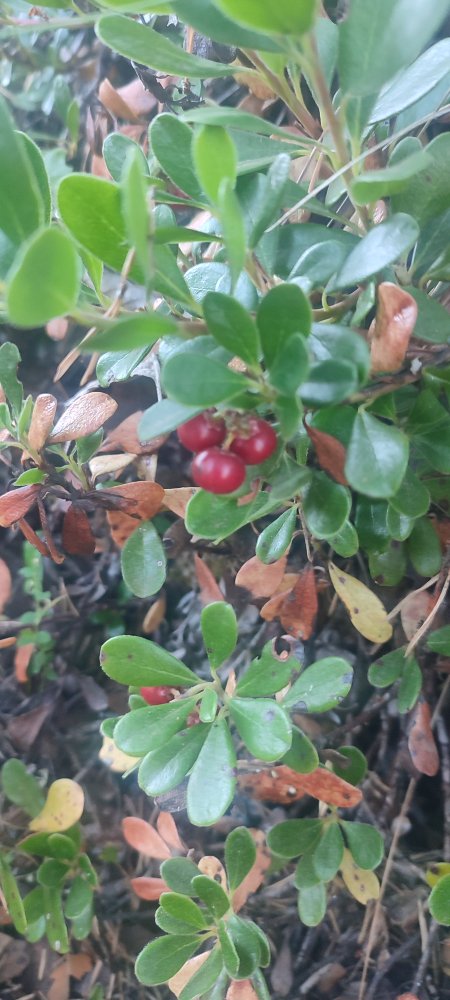 Nous montons dans un sentier raide qui zigzague entre les pins, il est bordé d’une plante qui pourrait nous faire croire à l’airelle de nos Vosges, mais il n’en est rien c’est le raisin d’ours.