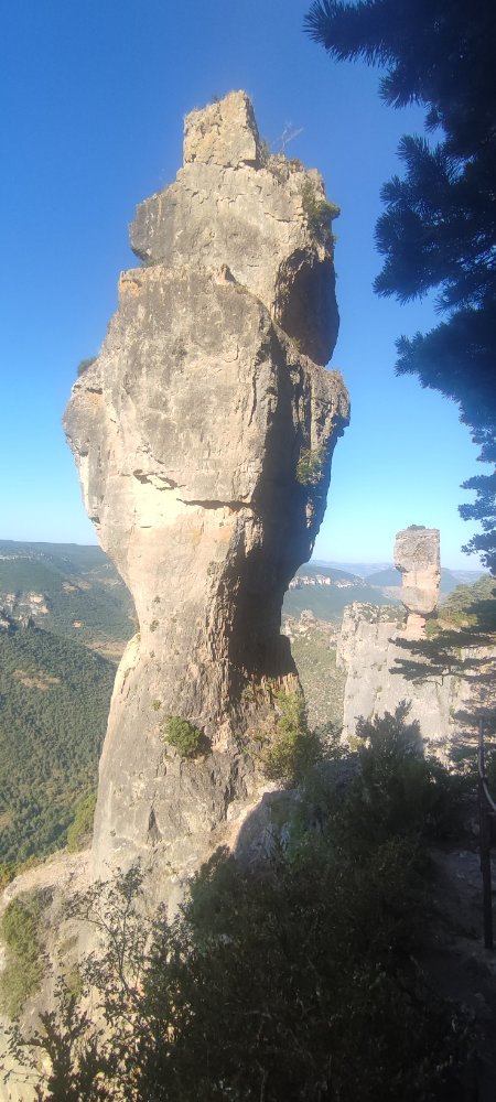 Le sentier serpente dans un dédale de roches et le vide se rapproche de nous ou c’est nous qui nous en rapprochons, enfin cela provoque des chatouillis dans les pieds. D’ailleurs ici les noms sont sans équivoque, nous parvenons à un point de vue qui se nomme « balcon du vertige ». Vue imparable sur la vallée, mais aussi sur des roches qui, avec leur surplomb, nous démontrent le travail de l’eau il y a des millions d’années.