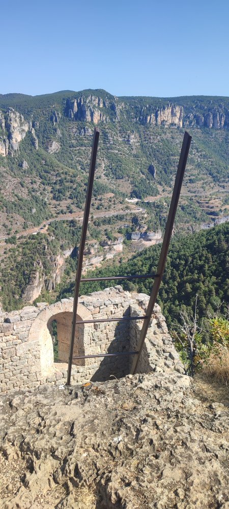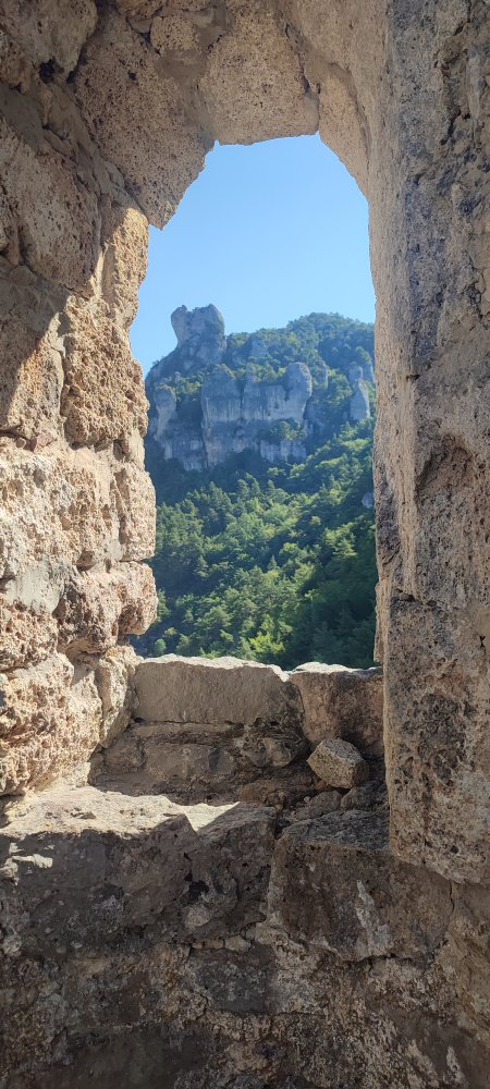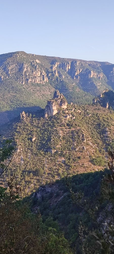 Ce matin, nous partons à la découverte de la corniche du causse Noire. Pour cela, nous laissons le véhicule au village de Peyreleau.
