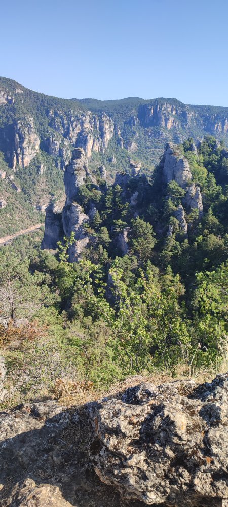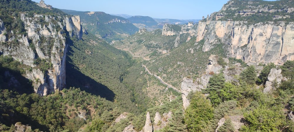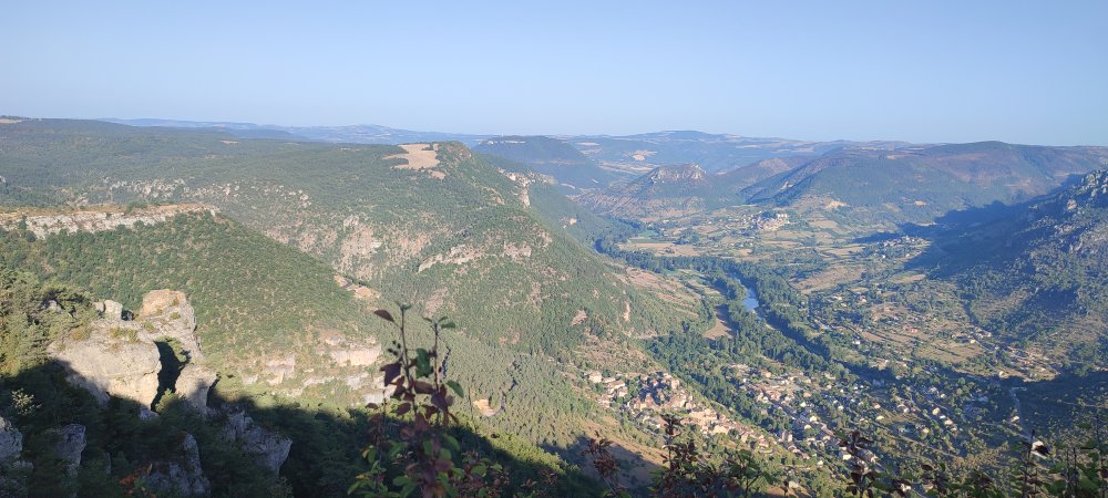 Mais nous faisons le choix de la randonnée ce qui nous donne le temps d’admirer ces paysages fabuleux. Tel que le rocher Capluc que nous observons sous un autre angle ou encore la vallée du Tarn qui est rejointe par la Jonte.