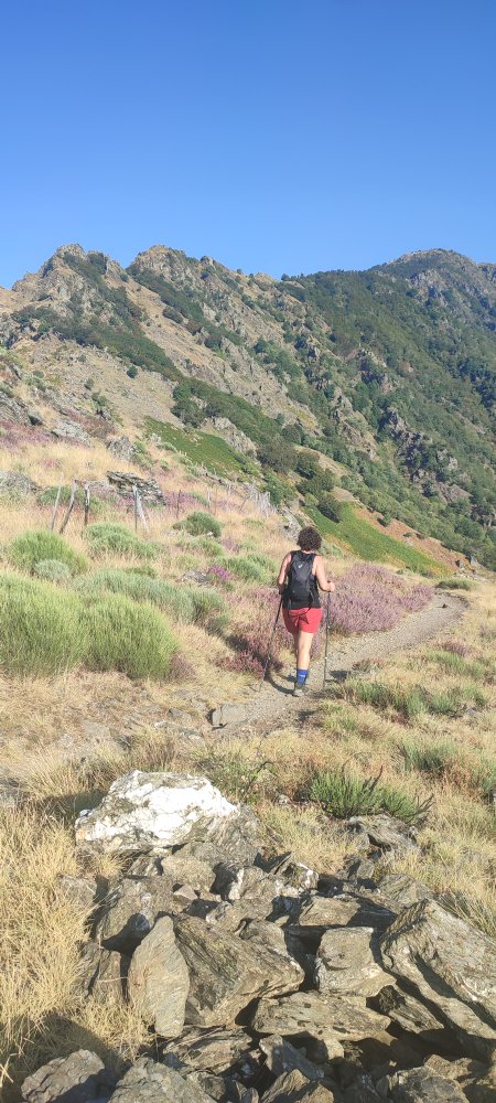 Nous évitons le versant atlantique tout en rondeur avec de la roche granitique pour emprunter le versant méditerranéen aux pentes vertigineuses creusées dans le schiste.