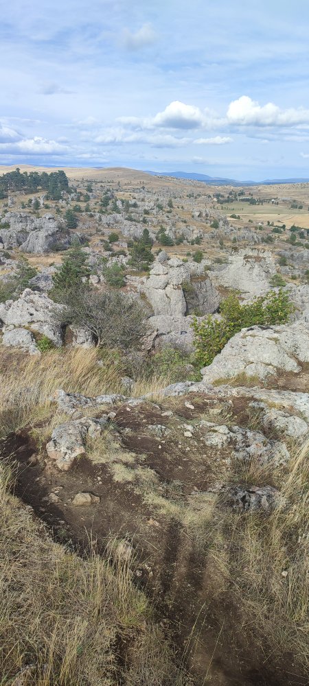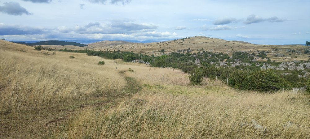 Ce causse nous fait perdre le sens de notre orientation, nous avons l’impression de nous retrouver dans les steppes de Mongolie, bientôt nous allons voir apparaître une yourte et des cavaliers avec sur l’épaule leur aigle chasseur.