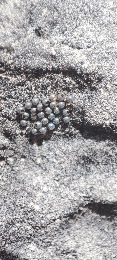 Nous pensons à des œufs d’un insecte et d’ailleurs en voici un à proximité aux formes préhistoriques, serait-ce lui ?