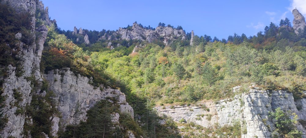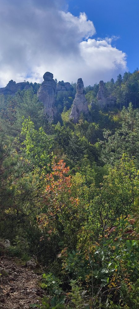 Nous voici au niveau de roches qui se dressent sur le flanc de cette montagne, sur la carte elles sont nommées les moines, Laetitia y voit les trois mousquetaires.