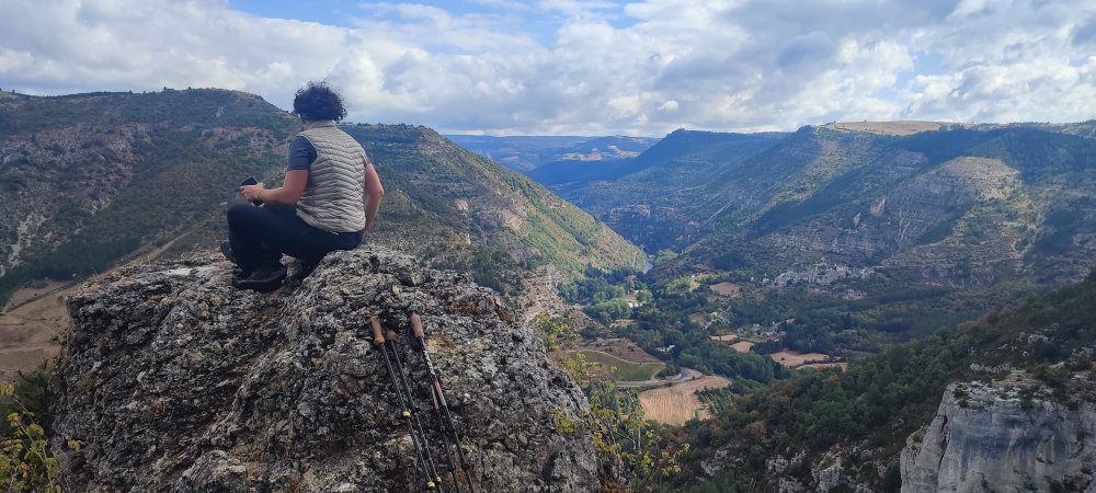 Nous avons décidé de randonner et de nous élever au-dessus de ces entailles ciselées dans les causses. En prenant de la hauteur le paysage s’ouvre et l’on distingue l’horizon différemment.