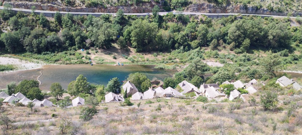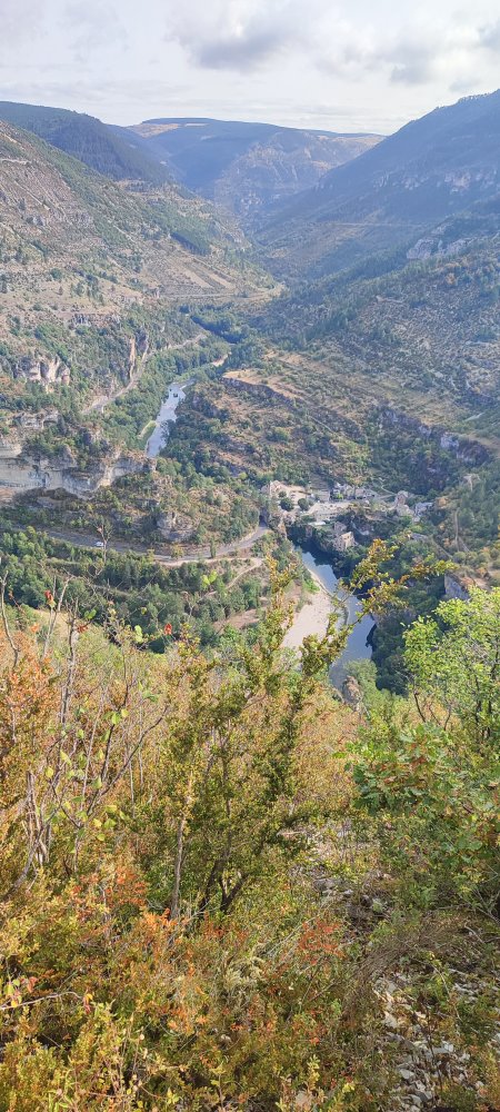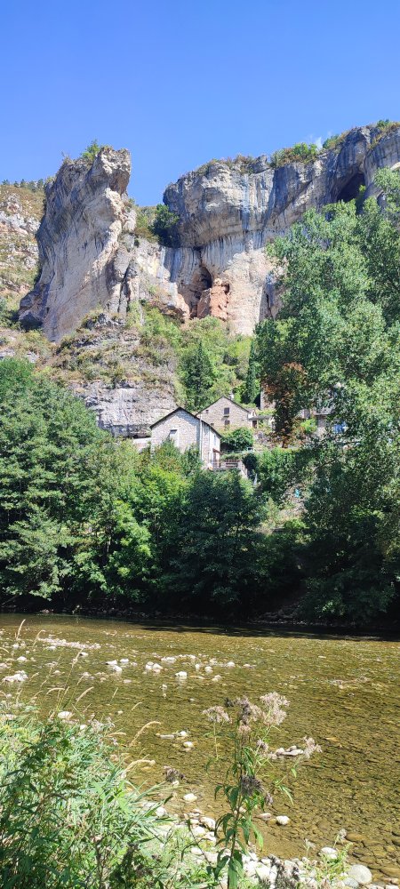 Depuis le pont franchissant le Tarn, les falaises sont imposantes, mais je constate que vous êtes plus émerveillés par la cascade ou le clocher de l’église.