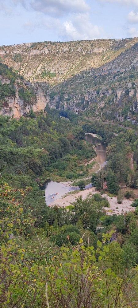 Nous sommes bien contents d’être ici en septembre, loin des cohortes du mois de juillet, août. Les gorges du Tarn ne devraient s’effectuer qu’à pied. Mais la nature est devenue une marchandise.