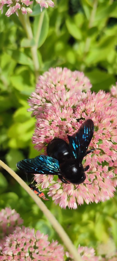 Cet insecte énorme dont j’ignore le nom m’a surpris avec des reflets changeants.