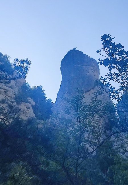 Voici une falaise qui nous impressionne, sa terminaison sommitale nous fait penser à la tête du sphinx.
