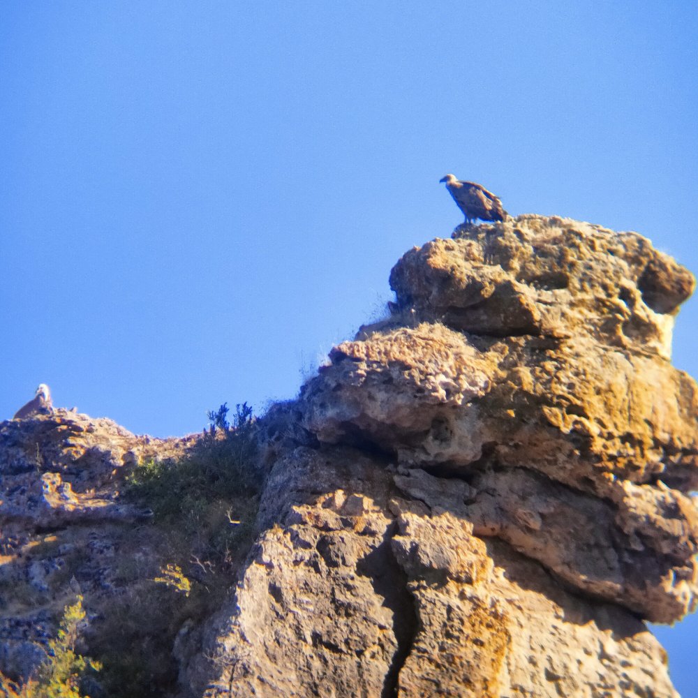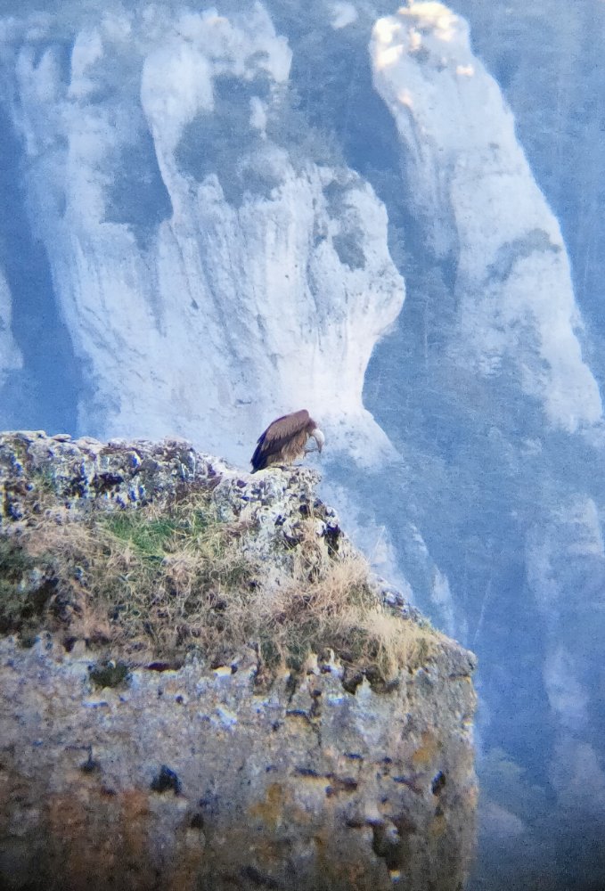 Nous ne disons pas un mot concentré sur notre recherche et surtout nous ne voulons pas troubler ce grand silence. Mais l’admiration de cet à-pic nous conduit à découvrir des vautours fauves dans des grottes, ils seront trois et nous les verrons s’envoler.