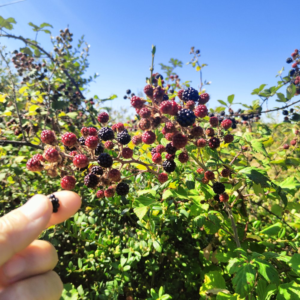 Le sentier se termine au hameau de Bourgarie, nous revenons par le causse. Nous avons bien traîné, il est midi passé. Nous comblons notre petite faim en récoltant ce que nous offre la nature, ces délicieuses mûres aux parfums envoûtant notre palais.