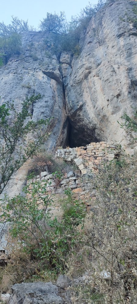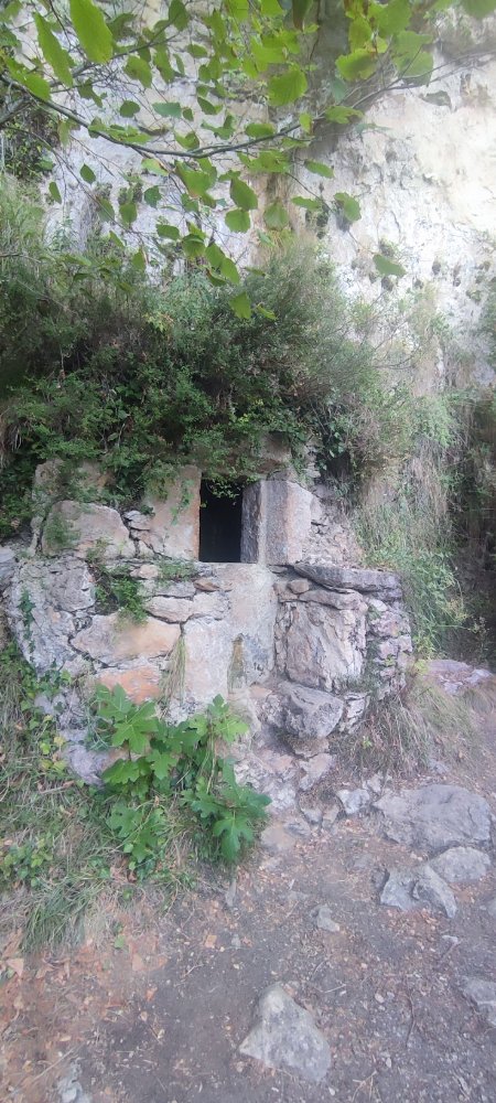 Nous poursuivons notre avancée et nous découvrons ce mur avec une voûte qui fût construite à l’entrée d’une grotte, cela servait d’habitat. De quelle époque ? Rien de précisé.