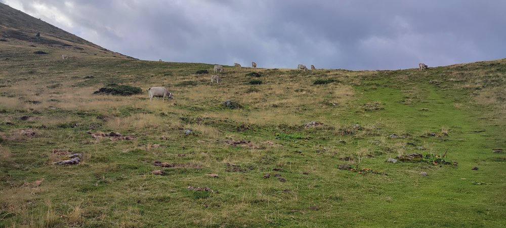 La pente s’adoucit et nous sommes accueillis par un concert de clarines. Merci, les vaches !