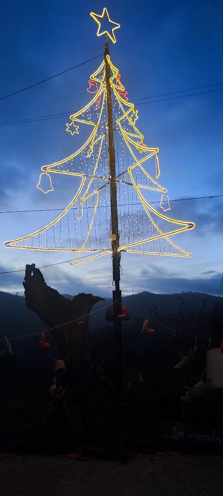 Ici sur la crête de la serra de Caldeirao, j’accueille encore les saisons. Le vent d’hiver, va soufflant, sifflant entre dans mes ruelles où un vieux monsieur s’avance une canne à la main et les habitants se comptent sur les doigts des deux mains, voilà que je me pare pour recevoir un marché de Noël.