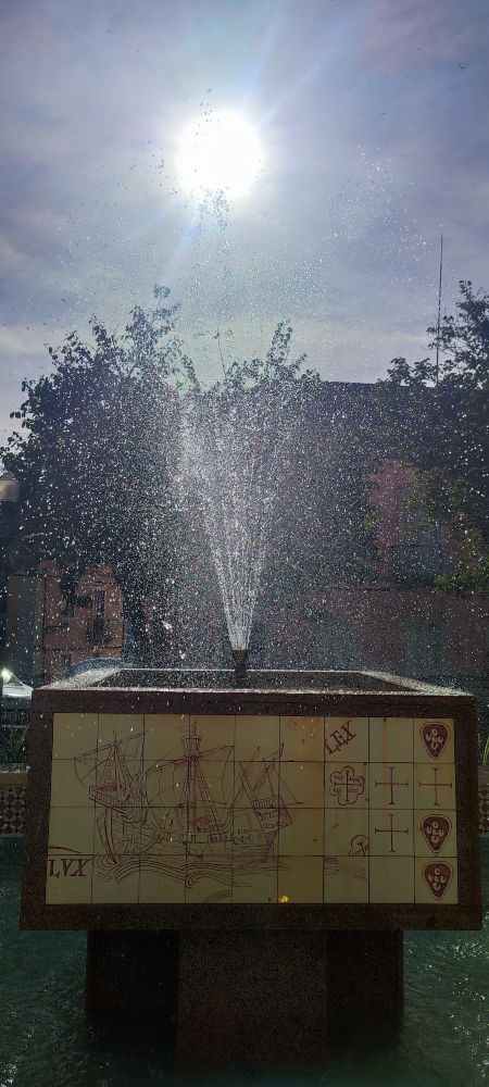 La fontaine au centre de cette place avec ses jeux d’eau dans le soleil contrebalance les idées funestes.