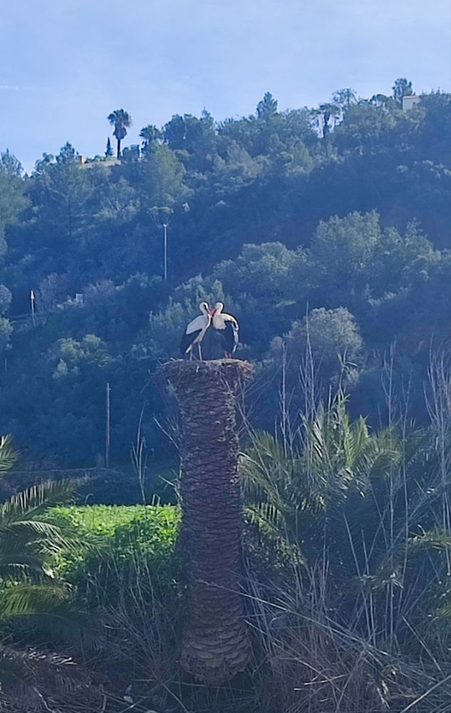 Nous sommes accueillis de la plus belle des manières : un couple de cigognes nous offre un cœur.