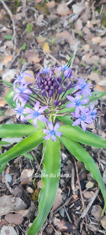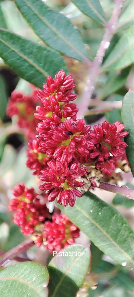 Le pistachier nous éblouit de son rouge et contraste avec la scille du Pérou qui est à ses pieds.