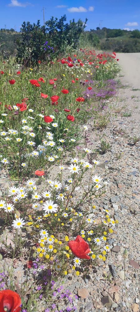 Tout au long de notre chemin les fleurs aux couleurs de jaune, de mauve, de blanc ou de rouge pour le pavot nous font une ovation.