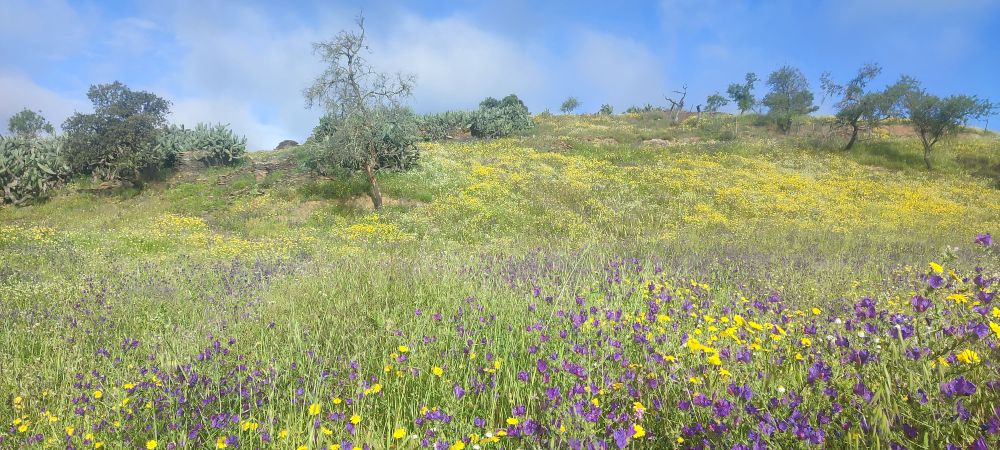 🌈Le lendemain nous empruntons un tronçon de la via-Algarviana pour rejoindre le bourg de Cachopo. Cela nous rappelle des souvenirs puisque l’année dernière j’ai parcouru en trail les 300 kilomètres de ce chemin de grande randonnée. Bientôt le livre racontant ce périple sort en E-book. ☺️