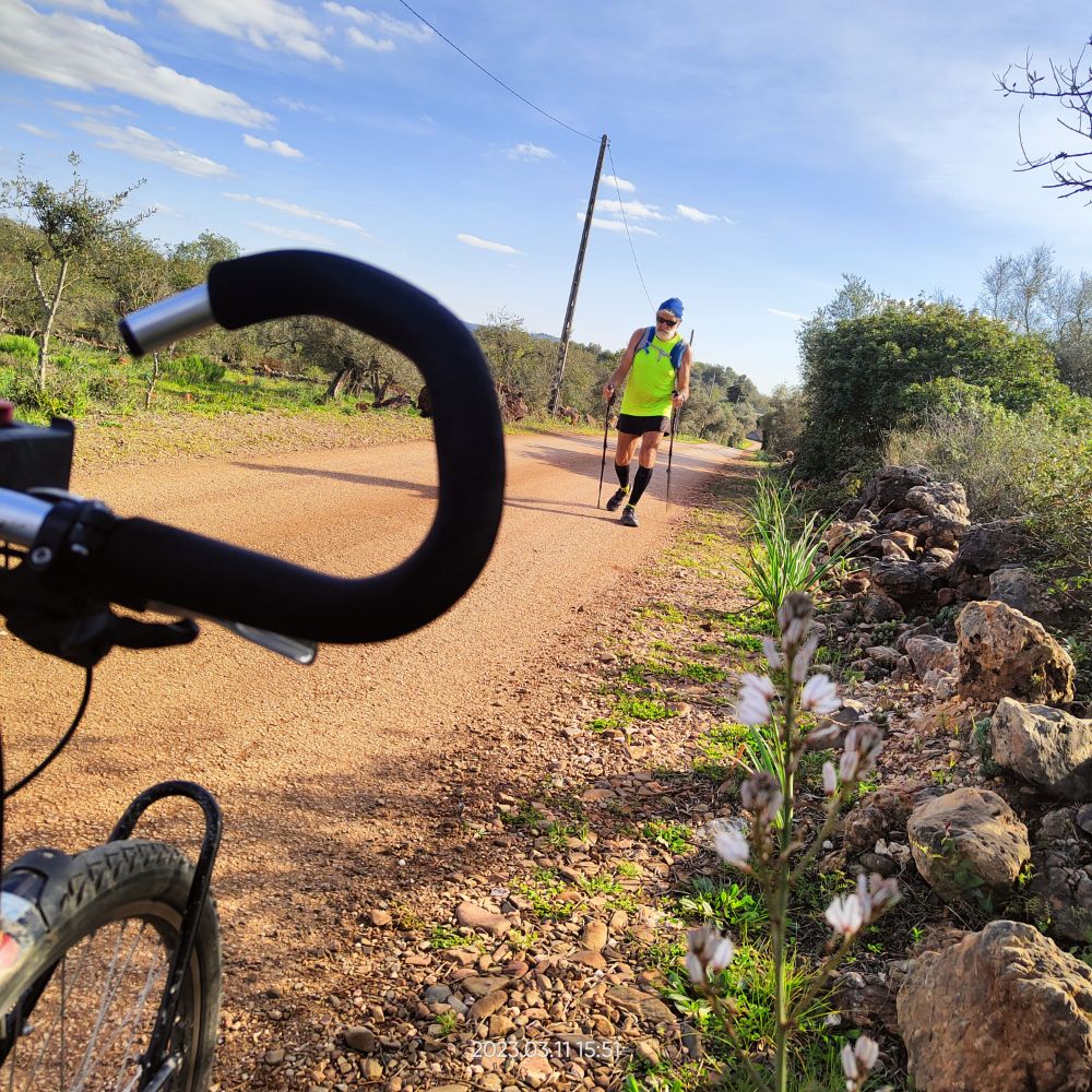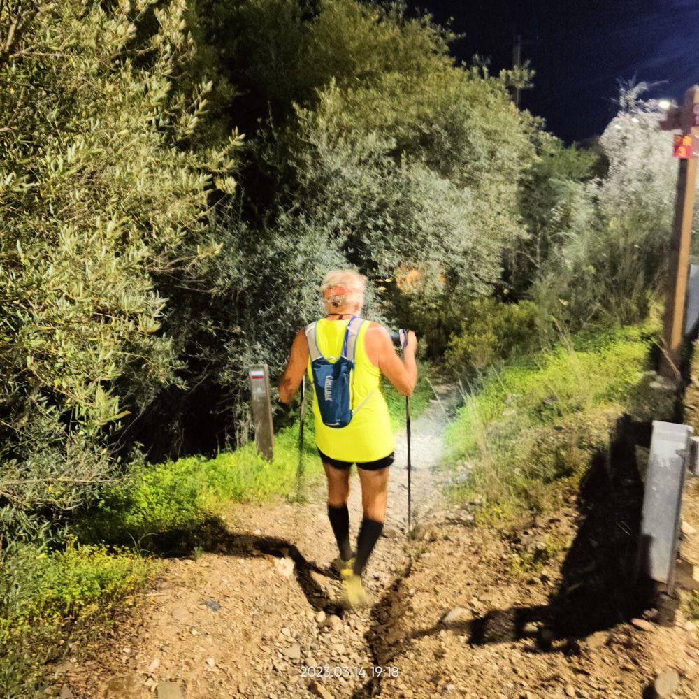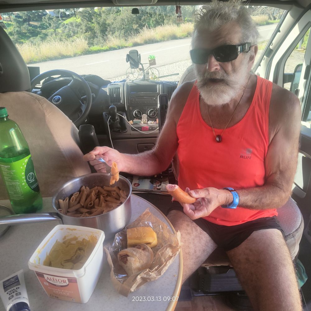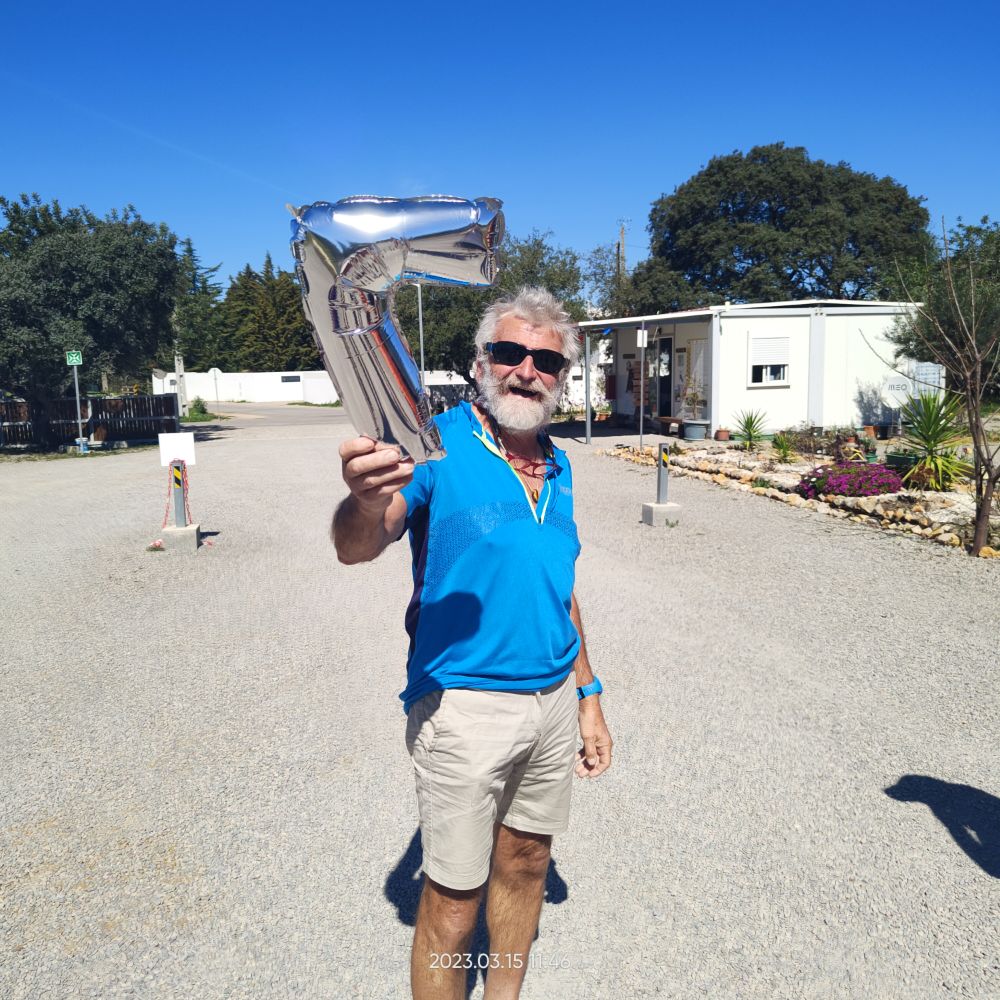 En ce matin du 7 mars 2023 Laetitia me donne le départ à 7hO7, normal cette a kinnée je vais avoir mes 70 ans. C’est avec joie que Laetitia m’annonce qu’elle m’accompagne sur les 7 premiers kilomètres. Le reste du temps, elle va assurer l’intendance. Mais pour l’instant pas question de courir mes deux tendinites aux tendons d’achille me font trop souffrir. Donc je marche au-dessus des falaises du cap Saint-Vincent.