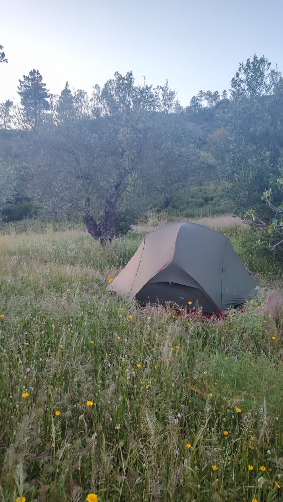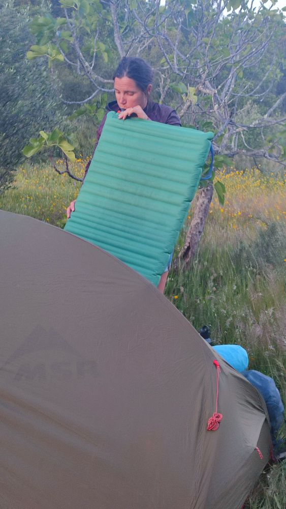 La tente est installée, nous savons encore la monter rapidement et nous ne manquons pas d’air pour gonfler nos matelas.