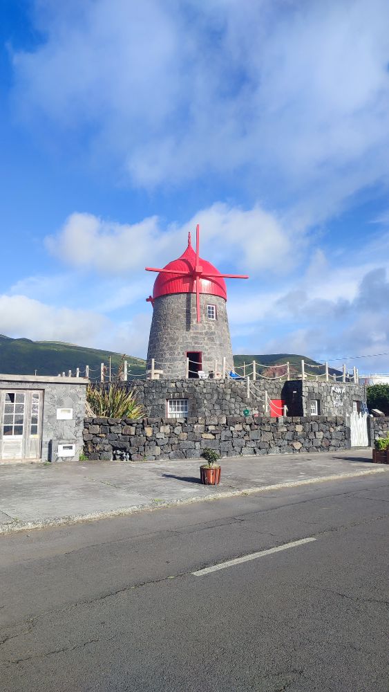 Nous arrivons en bord de mer dans le village de Praia, de nombreux moulins bien rénovés servent de résidence de location pour les touristes.