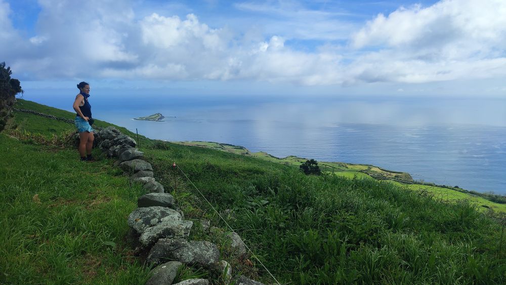Nous sommes sur l’un des points culminant de l’île de 349 mètres. Ce vert et ce bleu nous laissent sans voix.
