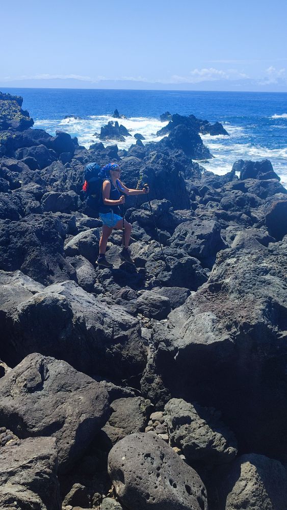 Par contre, le sentier qui traverse les roches de lave demande un bon sens de l’équilibre, mais il ne fait pas de cadeau aux chaussures.