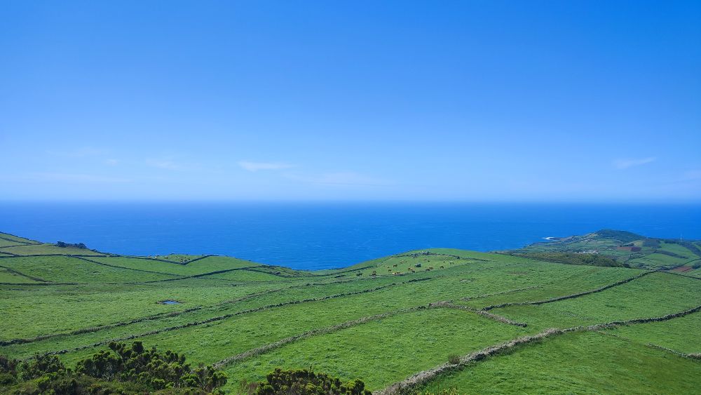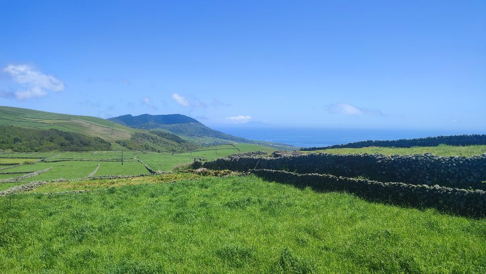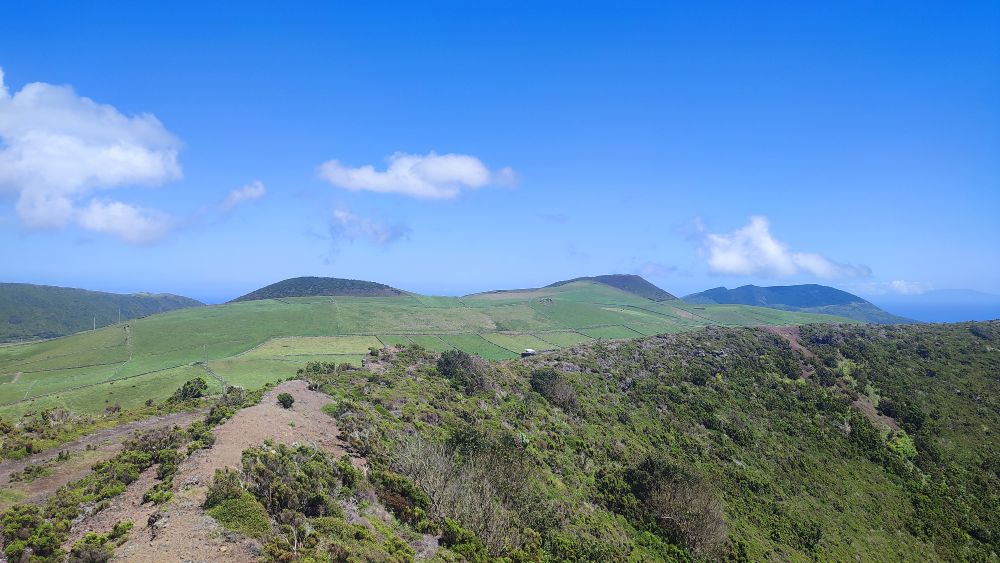 Mais ! Mais ! Là bas tout a l’horizon, ce cône qui s’érige vers le ciel, c’est le Mont Pico, le point culminant de l’archipel à plus de 2300 mètres d’altitude.