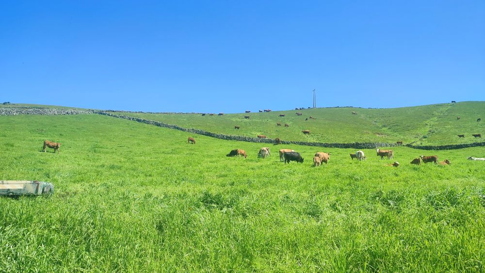 Jusqu’à présent l’on ne voyait que des vaches de production de race Horlstein et sans cornes, c’est un élevage très intensif qui est mené sur l’archipel.