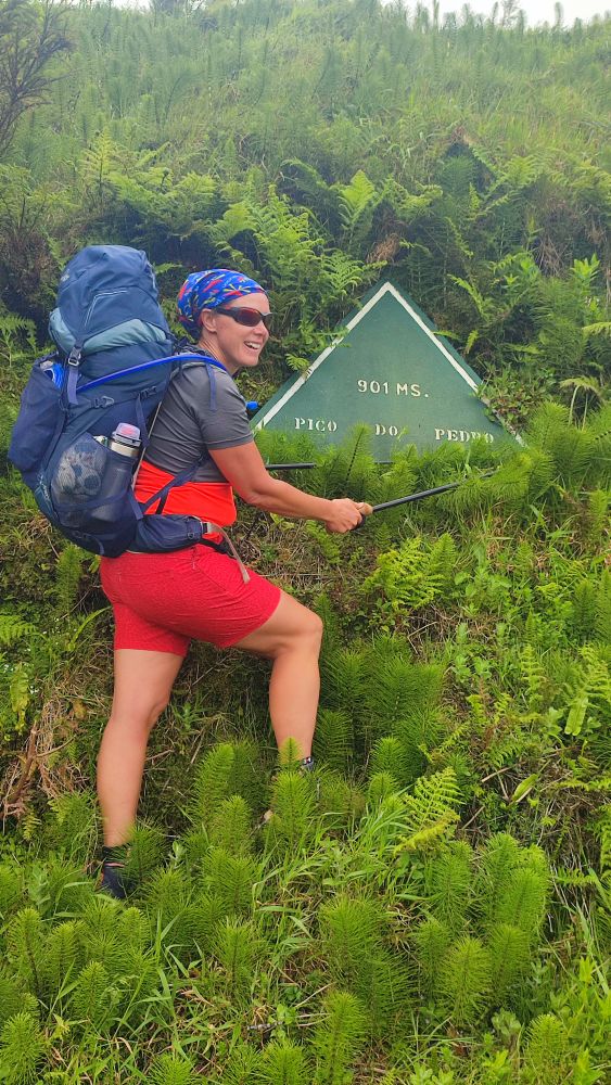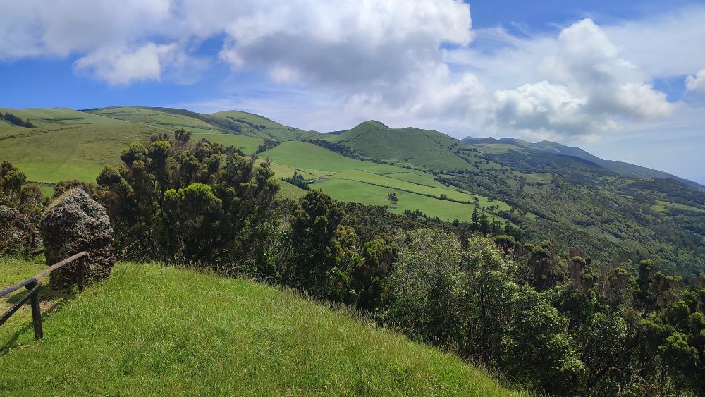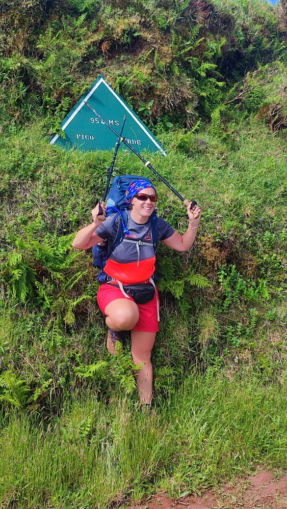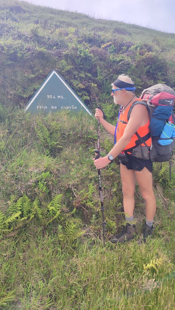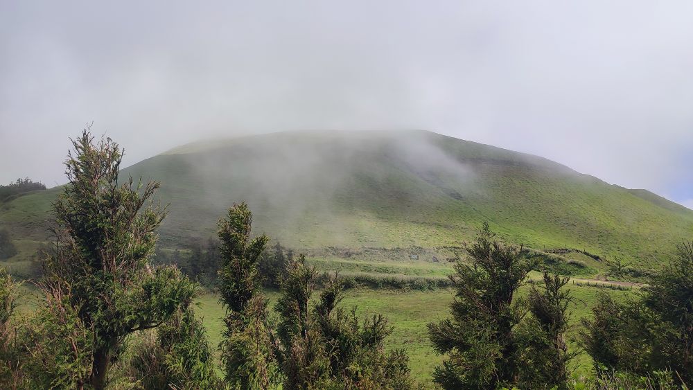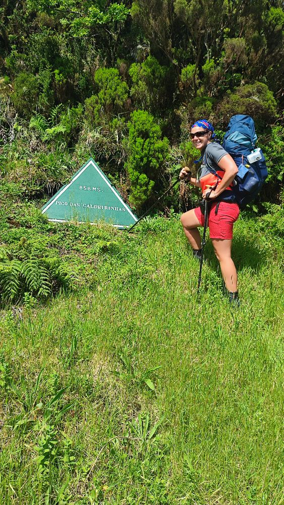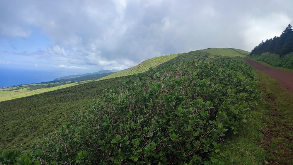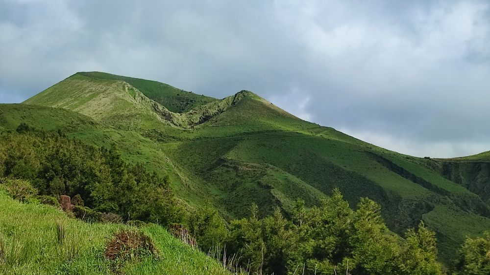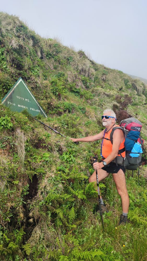 Voici la crête où nous allons marcher cet après-midi, notre objectif est le sommet de l’île, le pico Esperencça à 1053 mètres d’altitude.