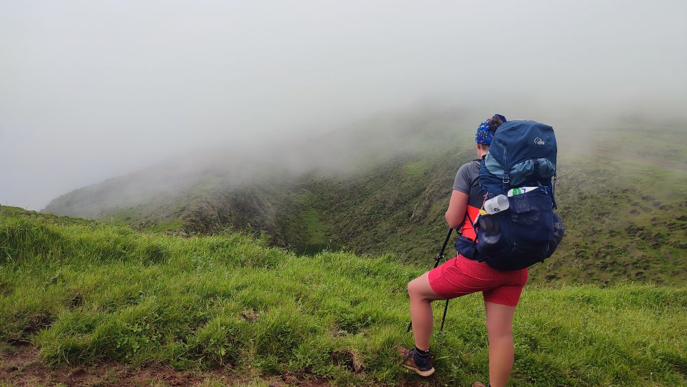 Vous comprenez que nous avons de sacrées montées devant nous et voici que les nuages envahissent les sommets, de l’autre l’océan est grandiose.