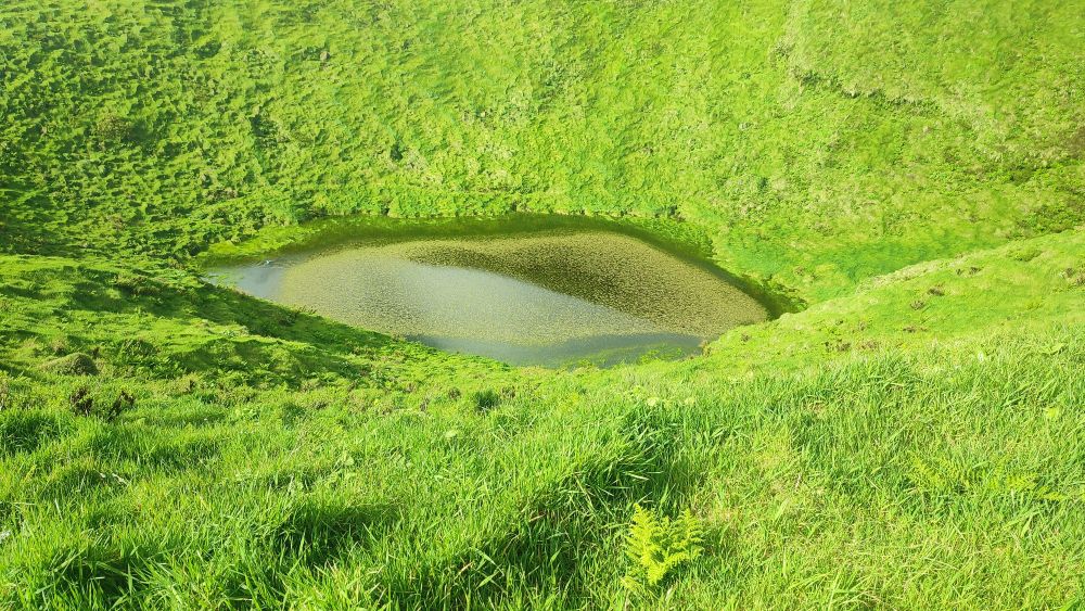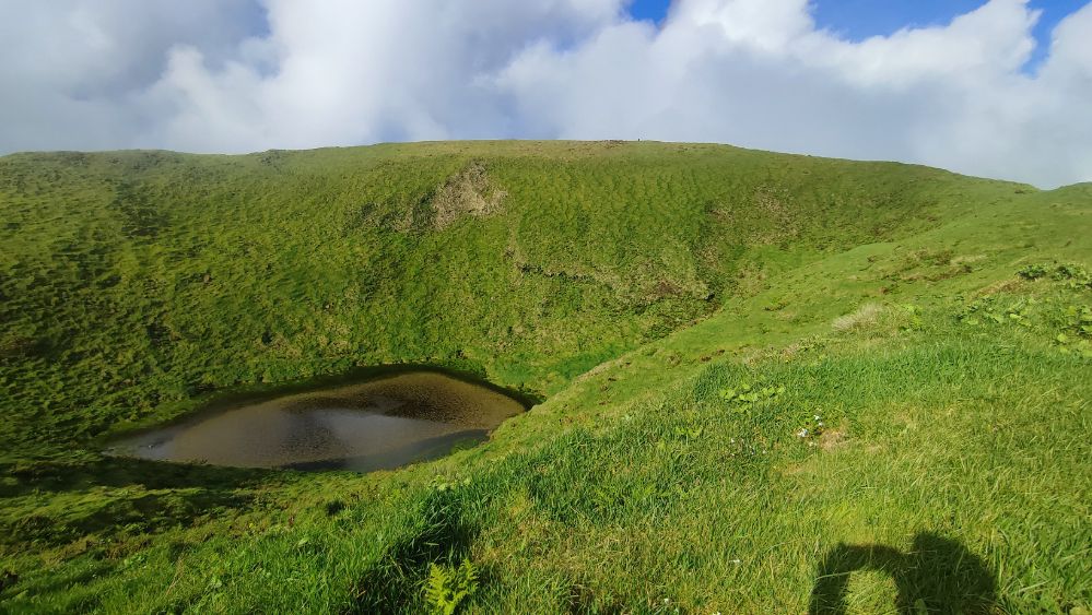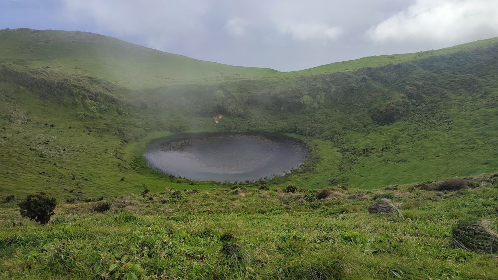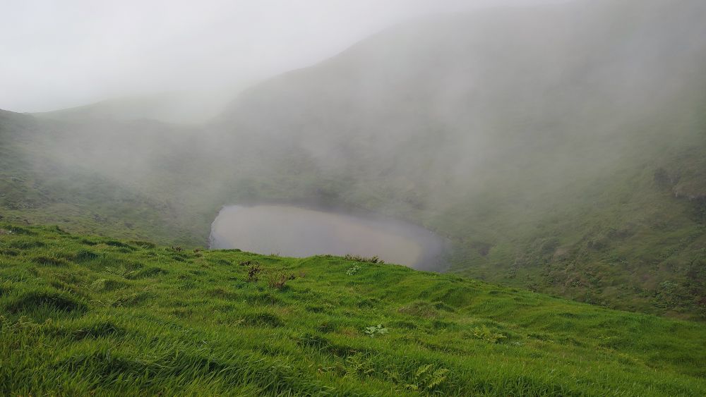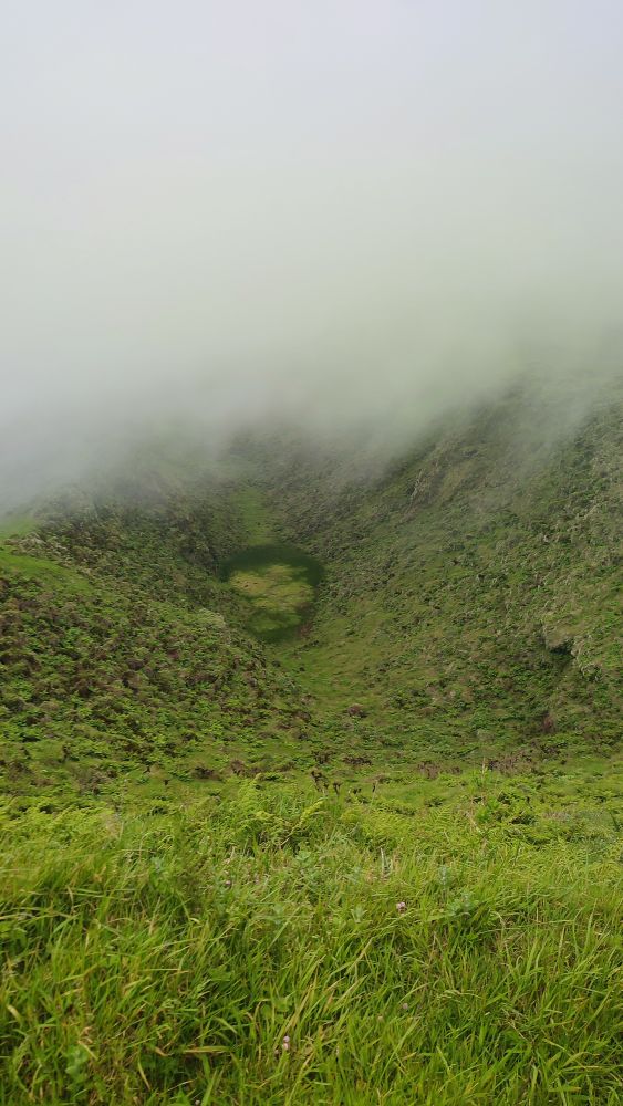 La lagune dans le fond du cratère du sommet nous hypnotise c’est un lieu incroyable où les éléments présents et passés sont là pour que nous nous sentions encore plus vivants.