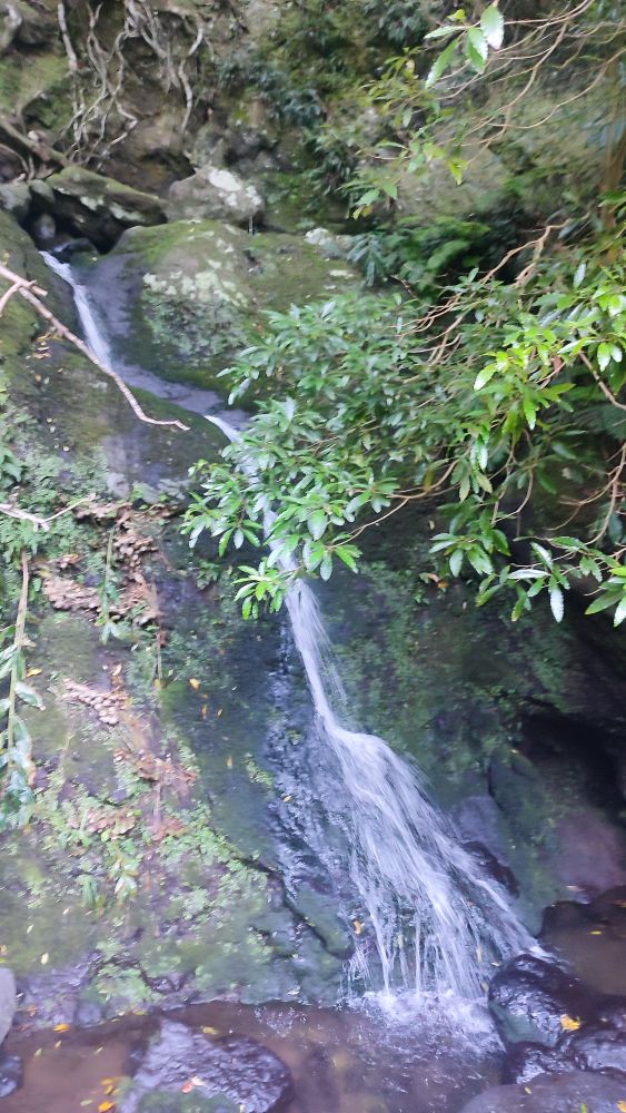 Nous voyons une petite cascade qui en période de pluie doit se transformer en un voile de mariée se déployant au vent.