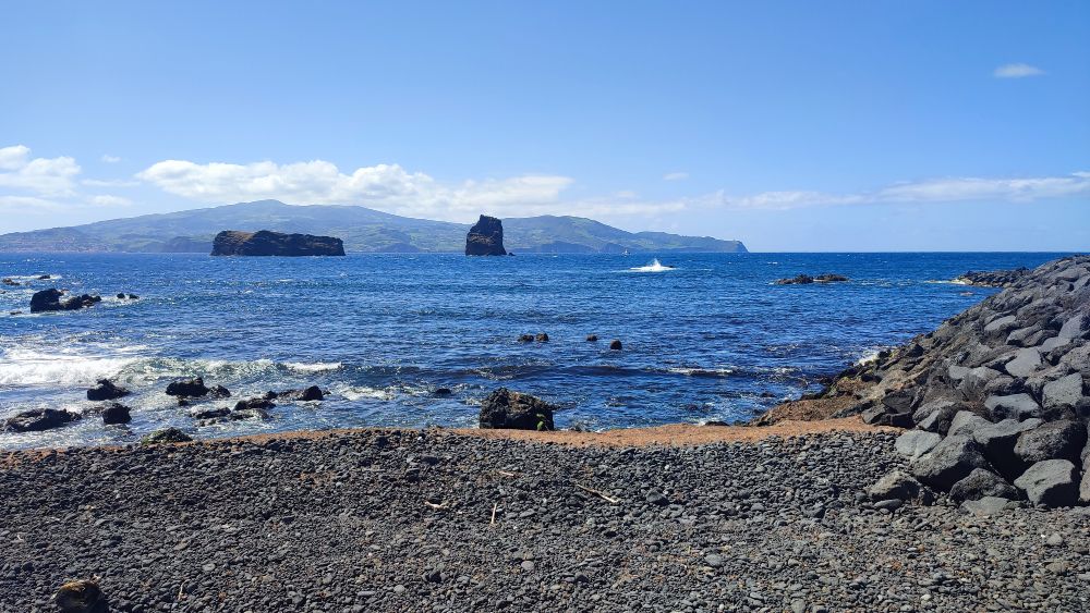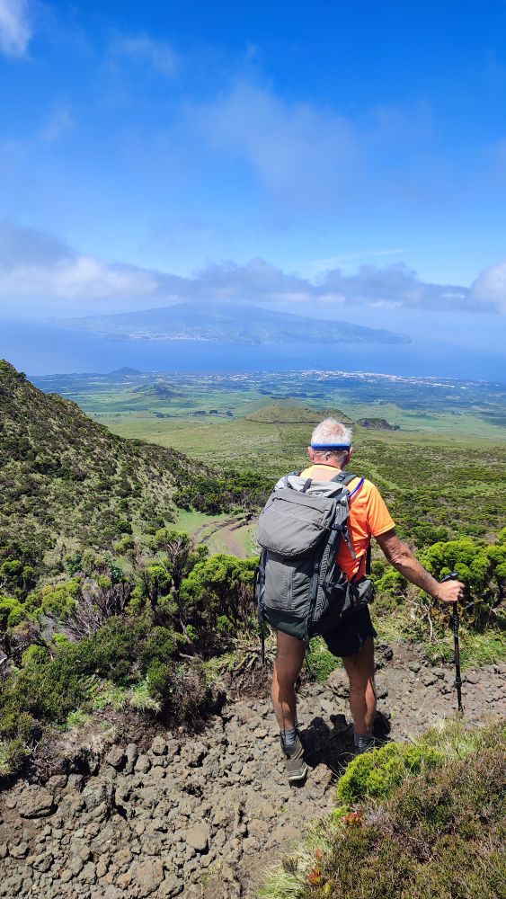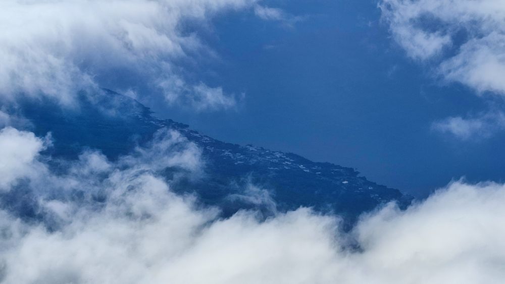 Depuis ces 2351 mètres nous ne pouvons pas admirer l’ensemble de l’archipel des Açores, mais le spectacle de cette mer de nuages est incroyable. Nous apprécions ce qui nous est offert. Une trouée dans les nuages et nous devinons quelques maisons.
